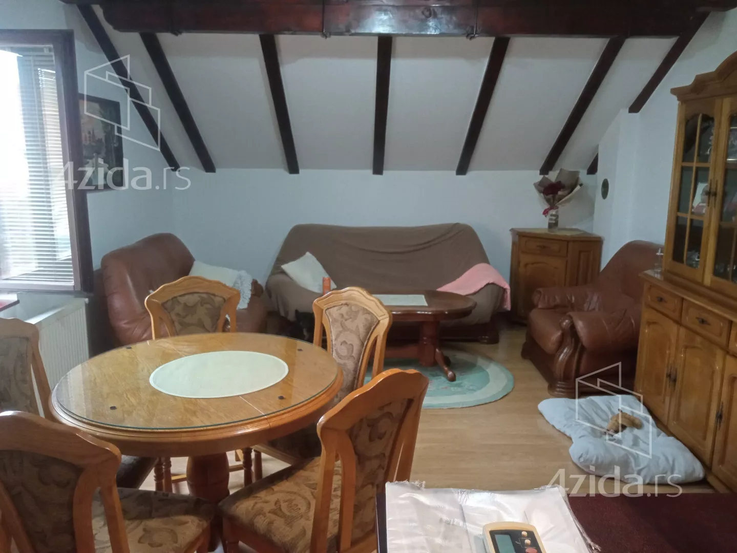 Novija kuća ,dva trosoban stan koja mogu da funkcionišu i kao jedan i kao dva stana,prizemlje da visokim potkrovljem,velika terasa ,podrum ispod terase,bgaraža