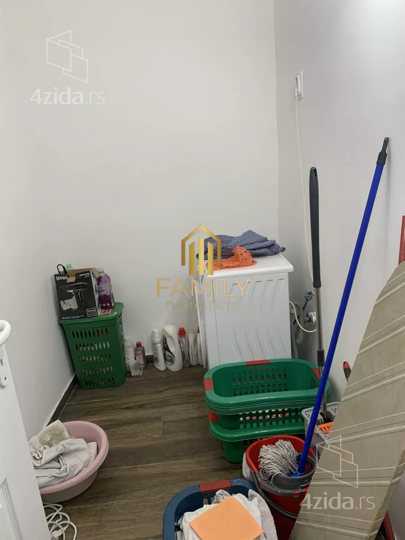 - Opremljenost: Namešteno - internet, TV, klima, veš mašina, kuhinjski elementi, frižider, zamrzivač, šporet, rerna, ležaj, plakar, ugradni plakar