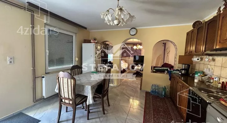 Na prodaju kuća na top lokaciji u naselju Šumica površine 160m2 na placu od 3.25.Prizemlje se sastoji od dnevnog boravka iz kog se izlazi na terasu, trpezarije sa kuhinjom i toaleta. Sprat čine tri sobe i kupatilo. Iz hodnika na spratu izlaz na mali balkon. Dvorište ograđeno, popločano i čini ga apartman površine 52 m2 koi se sastoji od prostranog dnevnog boravka sa kuhinjom, tpezarijom i kupatila. Pored apartmana u dvorištu se nalazi i pomoćna prostorija sa letnjom kuhinjom i izlazom na terasu kao i šupa. Garaža se nalazi do ulice. Kuća građena od čvrstog materijala, grejanje centralno na čvrsta goriva, struja trofazna, stolarija PVC sa roletnama, po podovima laminat i keramika. Lokacije kuće odlična, u neposrednom blizini osnovne škole, Karađorđevog parka, marketa, manjeg tržnog centra...Moguća kupovina putem stambenog kredita. Cena nije fiksna.