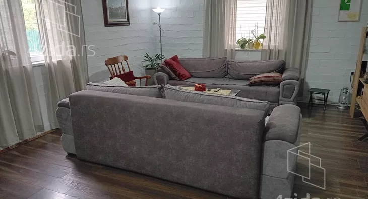 0va lepa kuća se nalazi nedaleko od saobraćajnica, u mirnom delu naselja, na odličnom placu. Prilika da potkrovlje uredite po vašoj koncepciji [postoje pregradni zidovi]. Svugde je PVC stolarija. Useljiv stan u prizemlju je veoma svetao. Na podu je laminat, postoji izolacija na zidovima. Ulaz u garažu je sa suprotne strane. Odlicna investicija.