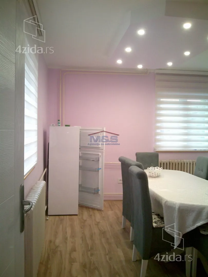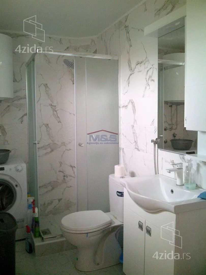 - Opremljenost: Namešteno - internet, klima, kuhinjski elementi, sudo mašina, zamrzivač, šporet, rerna, ležaj, plakar, ugradni plakar, kanalizacija