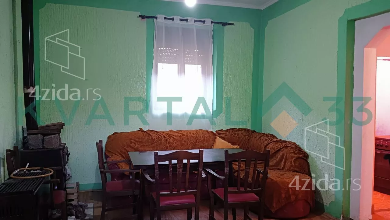 Kuhinja, trpezarija, 3 sobe, hodnik i kupatilo. Sobe imaju zasebne ulaze, a ujedno su povezane vratima, pa mogu biti i prolazne i izolovane. Za grejanje postoje 2 TA peći, jedna peć na drva i 2 gasne peći (nisu korišćene jer kuća trenutno nije priključena na gas, ali gasne cevi su sprovedene kroz kuću).
