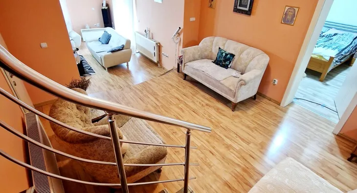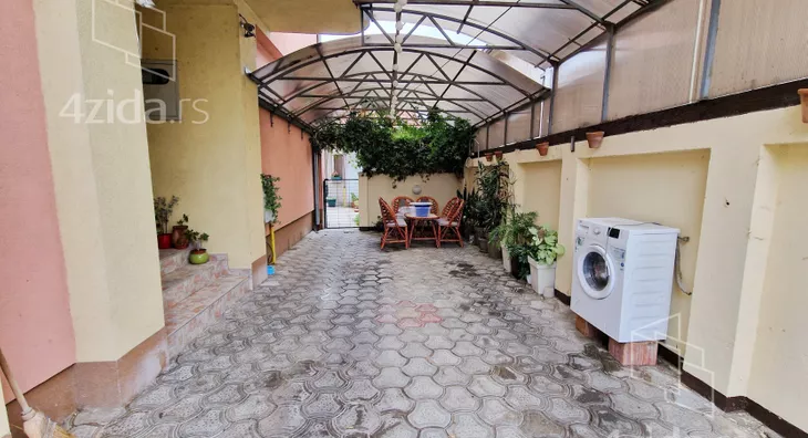 Na prodaju veća spratna porodična kuća od 248m2 u blizini Akva parka.Kuća je pravljena 2017god i sastoji se iz dve etaže.Kuća je veoma moderna,funkcionalna i praktična za dve porodice.U prizemlju se nalazi veliki dnevni boravak sa izlazom u dvorište,hodnik,kupatilo,spavaća soba i velika kuhinja sa trpezarijom i ostava.Na spratu su četiri spavaće sobe,veliki hodnik,kupatilo,garderober soba i tri terase.Iza glavne kuće nalazi se takođe novija manja kuća od 86m2 koja je po strukturi veliki jednosoban stan.Obe kuće imaju sopstveni kotao na gas.U delu pomoćne kuće nalazi se i podrum a na ulazu u prvu veću kuću je velika nadstrešnica za parkiranje automobila i ujedno jedna ogromna terasa.Moguća zamena za dva stana.Nalazi se na traženoj lokaciji u mirnoj ulici.Uknjižena 1/1