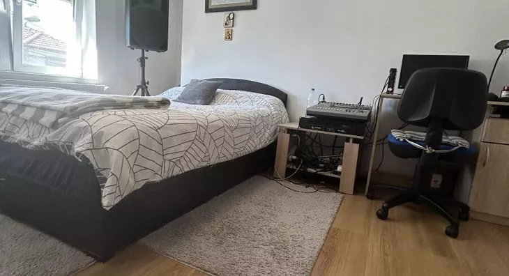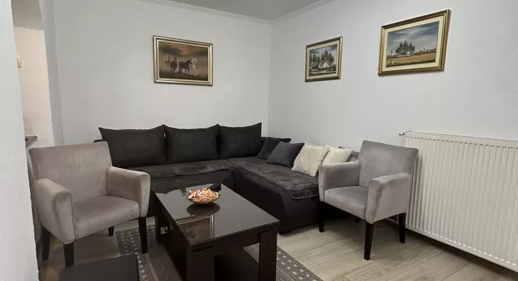 - Opremljenost: Namešteno - internet, TV, klima, veš mašina, sudo mašina, frižider, rerna, ležaj, plakar, kanalizacija