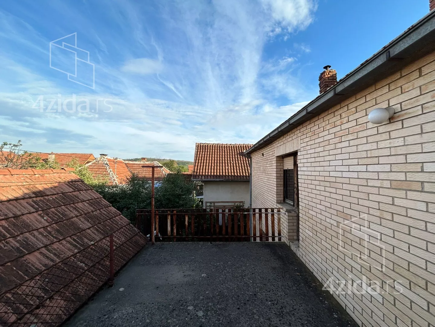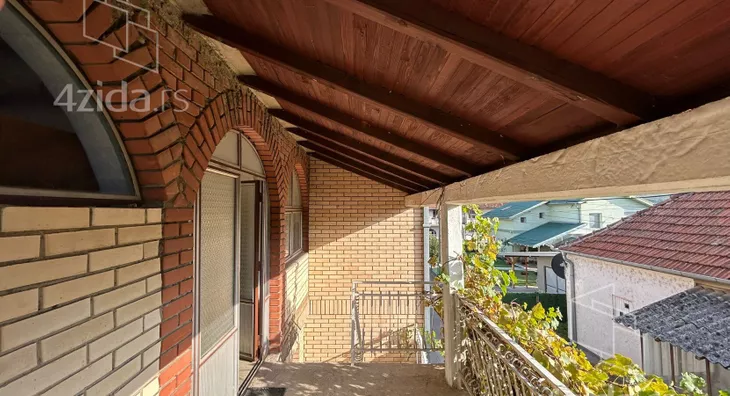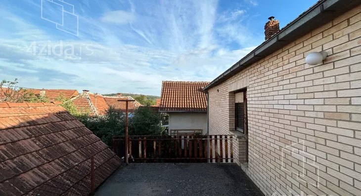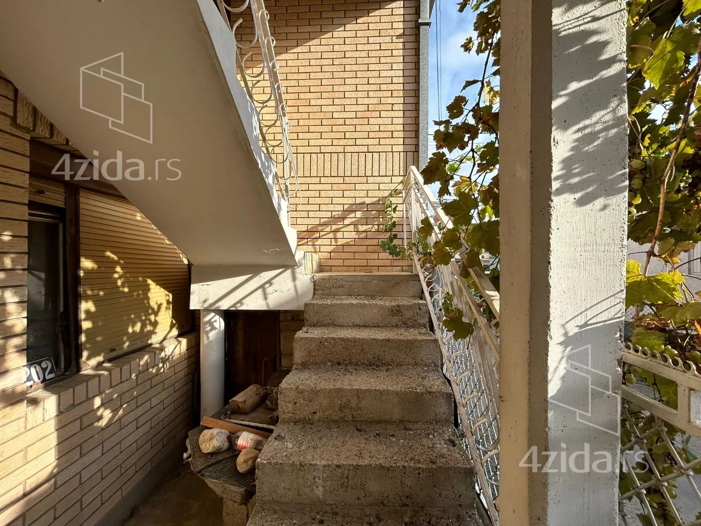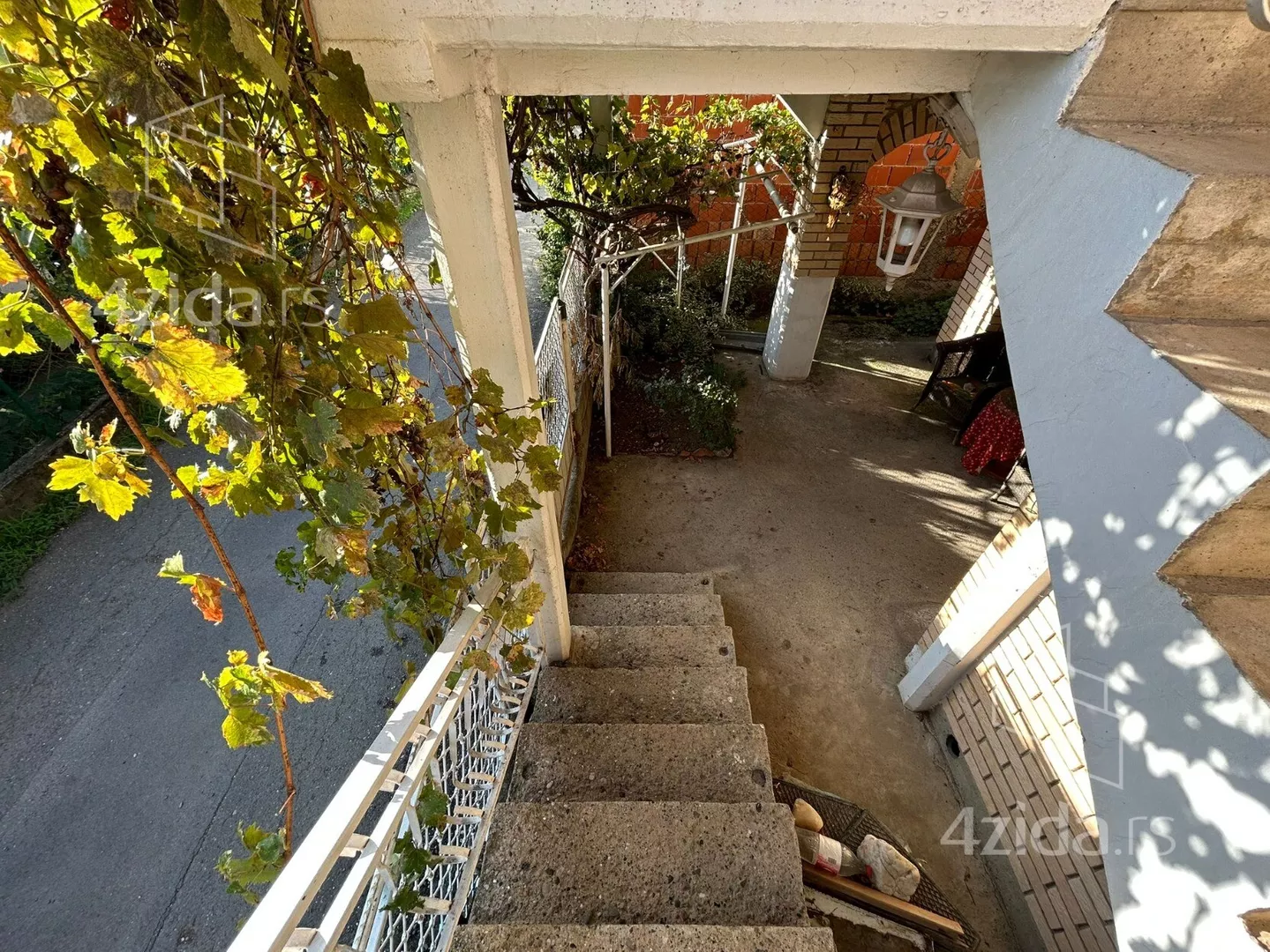 Kuca se sastoji iz 2 stambene jedinice. U prizemnom delu prve stambene jedinice nalaze se hodnik, kupatilo, spavaca soba, dnevni boravak sa trpezarijom i kuhinjom i garaza. Na spratu se nalazi druga stambena jedinica u kojoj su hodnik, kupatilo, 3 spavace sobe, dnevni boravak sa trpezarijom i kuhinjom i 2 terase. U dvoristu se nalaze 2 pomocna objekta. Kuca ima izlaz na 2 ulice. Idealna za viseclanu porodicu.