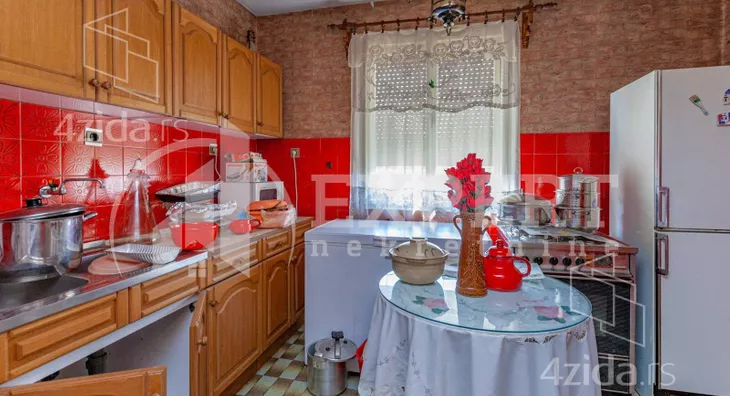 Prodaju se dve etaže porodične kuće, sa placem i garažom u naselju Crvena Zvezda. Plac je veličine 3,7 ara, koji je u potpunosti ograđen. Osnova porodične kuće je 121m2. Prodaje se etaža na prizemlju, koja je 60m2 i poslednja etaža, na drugom spratu, koja je veličine 121m2. Ove dve etaže imaju potpuno zaseban ulaz u odnosu na drugu polovinu ove porodične kuće, kao i potpuno ograđeni i zaseban deo placa koji im pripada. Ulaz u plac i u kuću gledaju na glavnu ulicu. Ovim etažama pripada i potkrovlje kuće koje je moguće urediti u zasebnu stambenu jedinicu. Pored kuće, na placu se nalazi i uređena garaža veličine 23m2 i manji pomoćni objekat. Poslednja etaža je u funkciji troiposobnog stana i sastoji se iz većeg hodnika, tri sobe i kuhinje sa izdvojenom trpezarijom. Na etaži postoji i terasa, do koje se dolazi iz spavaće sobe. Kupatilo ove etaže je prepravljeno u letnju kuhinju, ali instalacije su ostale, te je lako vratiti namenu u kupatilo. Prizemna etaža je u funkciji dvoiposobnog stana a sastoji se iz manjeg hodnika, kupatila, jedne veće spavaće sobe, dnevnog boravka i trpezarije sa kuhinjom. Kuća je u izvornom stanju i zahteva ulaganje. Za sve ostale informacije nas slobodno kontaktirajte.
