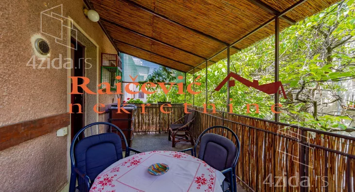 Na lepoj lokaciji nalaze se 2 stana i garaza u kuci. Kamena pikovana fasada, ocuvana. Prelepo dvoriste sa pravom koriscenja. Miran, porodican kraj. U sklopu dvorista je supa. Visedecenijsko voce, drvece, kutak sa stolom i klupama.