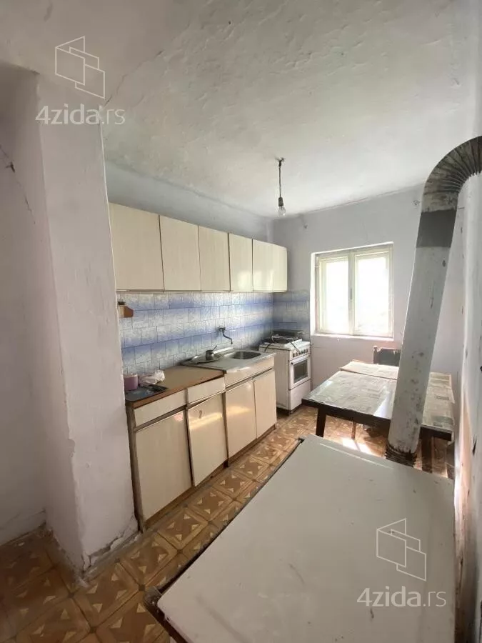 U Uzdinu selu na oko 60 kilometara od Beograda, pored reke Tamiš, na prodaju kuća od 80 m2, sa 45 ari placa. Kuća starije gradnje, od čvrstih materijala, uz delimično renoviranje odmah useljiva. Kuća ima 2 velike sobe, kuhinju sa trpezarijom kupatilo i predsoblje. Podovi beton, zidovi i plafoni u dobrom stanju, stolarija drvena. Struja trofazna, voda seoski vodovod, sve u funkciji. Na istom placu podignuta i nova spratna kuća od 200 m2, izidana i stavljena pod krov, potrebno je završiti je. U dvorištu garaža, ambari, i nekoliko pomoćnih zgrada za smeštaj ogreva,vozila ili za uzgoj stoke. Plac od više parcela frontalno širok oko 50 metara, površine od 45 ari i prostire se duž ulice sa asvaltnim putem. Uknjiženo, svojina. Cena 42.000 eura.