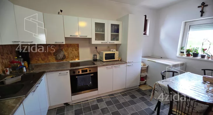 Prodaje se porodična kuća 206 m2 u Veterniku, novija, sa dva odvojena stana sa posebnim ulazima ali je urađeno tako da jednostavno može biti samo jedan stan jer je stepenište odvojeno zidom koji se lako može ukloniti.