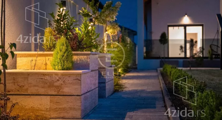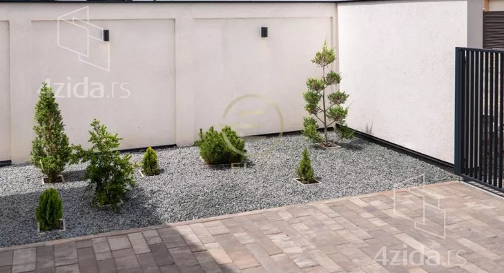 Površina parcele je 704m2. Postoji mogućnost izgradnje bazena u dvorištu. Poseduje i garažu na daljinsko otvaranje, video nadzor, interfon, wifi grejanje i hlađenje, wifi bojler, bunarska voda za zalivanje travnjaka i vrta, skrivene oluke sa grejačima za otapanje snega, rasvetu razvedenu u okviru dvorišta. Vrlo niski mesečni troškovi.