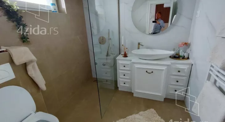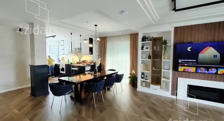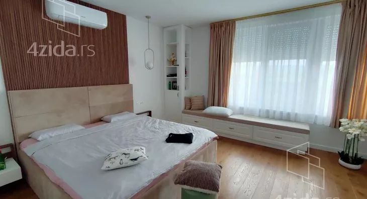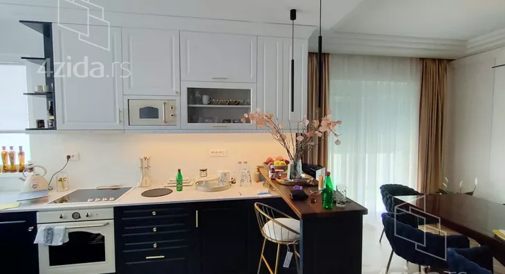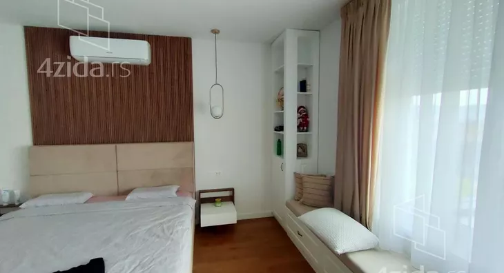 - Opremljenost: Namešteno - internet, interfon, TV, klima, veš mašina, sudo mašina, frižider, rerna, ležaj, plakar