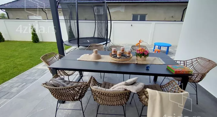 Oglasavamo prodaju nove, lux pametne kuće Pr+Sprat ukupne površine 200m na placu od 738m u Novom Sadu- Veternik novi deo bliže Dunavu. Kuća je potpuno nova, završena pre mesec dana u prizemlju veliki dnevni boravak sa kuhinjim, modeno opremljena, velika terasa sa pogledom na Frušku goru, igralište za decu , roštilj, ostava u dvorištu, dva kupatila, na spratu četiri spavace sobe, kupatilo, kuća je sa podnim grejanjem na gas i na struju, sa video nadzorom, kamerama, garazom, kapijom sa daljinskim otvaranjem i parkingom.Trava u dvorištu je sa automatskim zalivanjem i prskalicama, dosta ukrasnog zelenila. Kuća se prodaje sa kompletnim novim namestajem, useljiva je odmah. Za vise informacija javite nam se. Samo ozbiljni kupci.