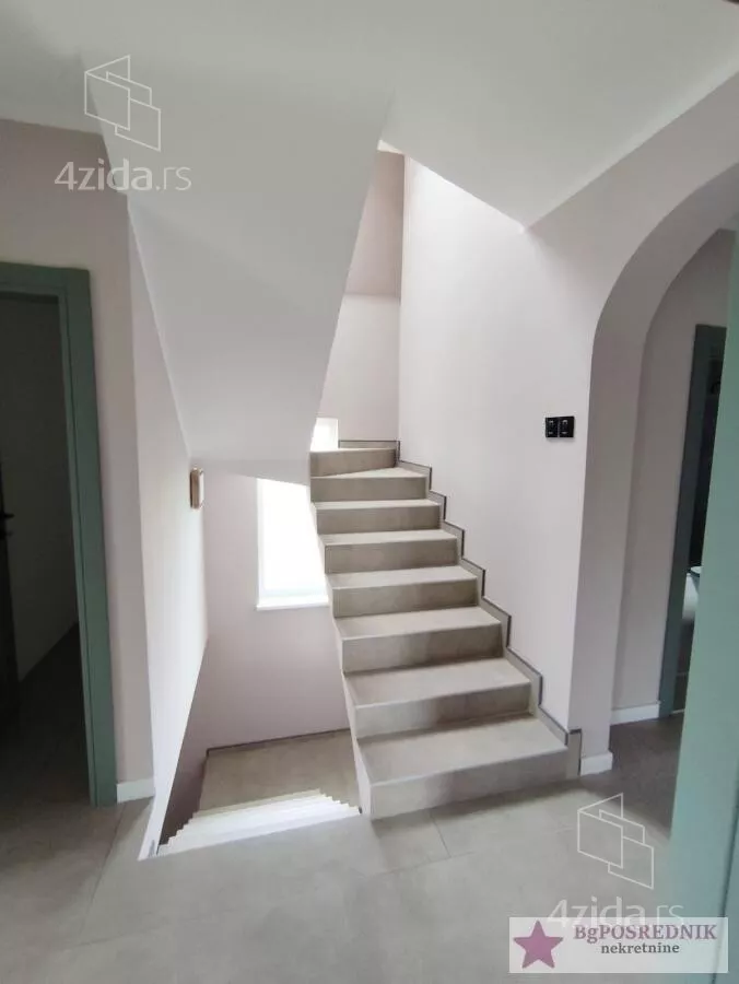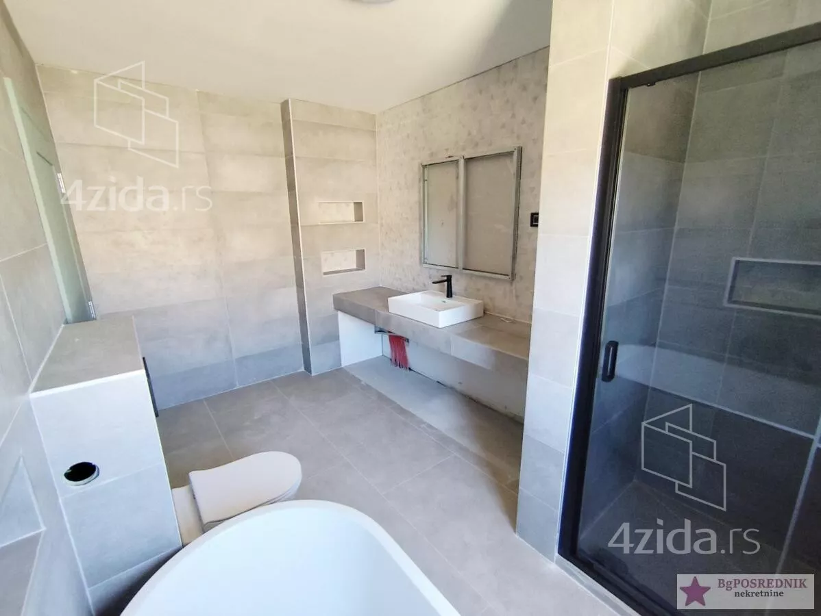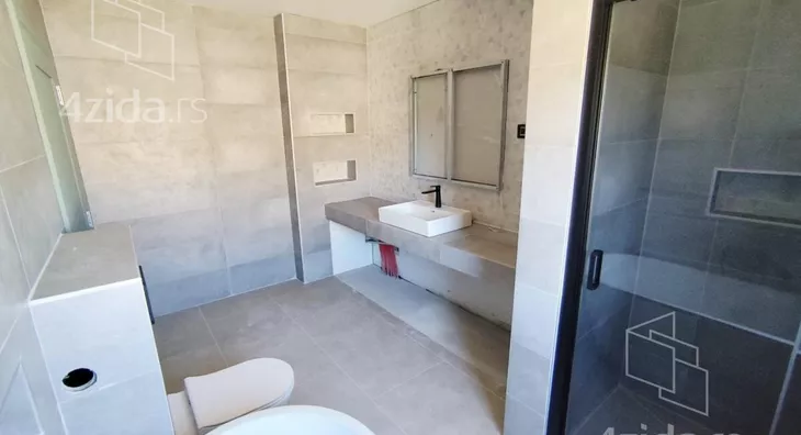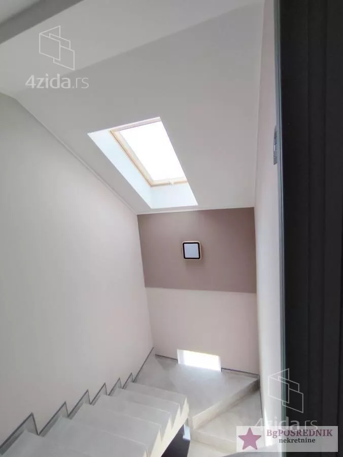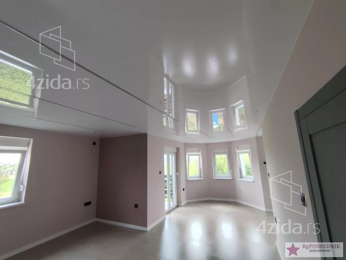 Ima tri etaže, ukupnu površinu 260m2 sa terasama sa kojih se pruža pogled na Frušku goru.