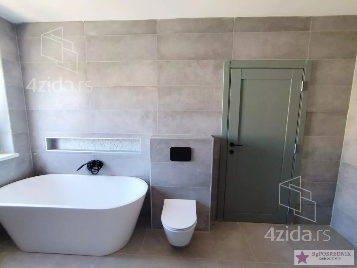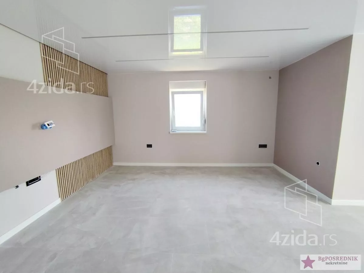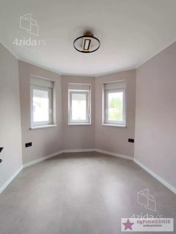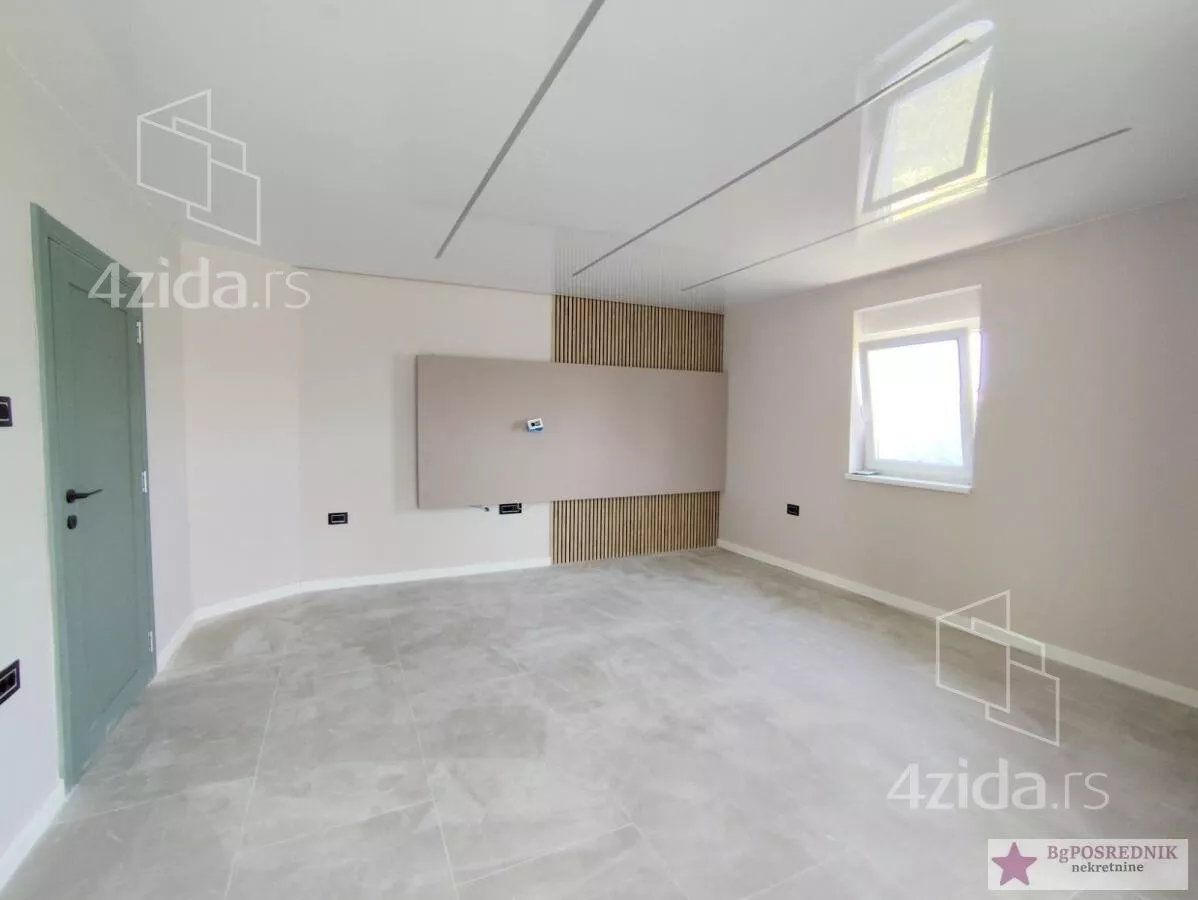 Ima tri etaže, ukupnu površinu 260m2 sa terasama sa kojih se pruža pogled na Frušku goru.