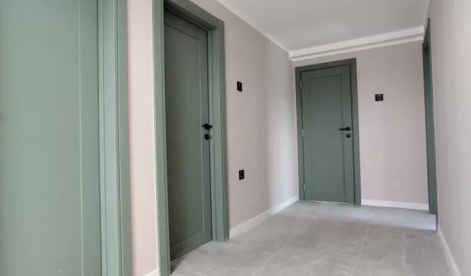 -srednja etaža (prvi sprat): dnevni boravak sa trpezarijom i kuhinjom (ostrvo, blum mehanizmi, ugradna elektronika), ostava, terasa, dve sobe i kupatilo/wc.