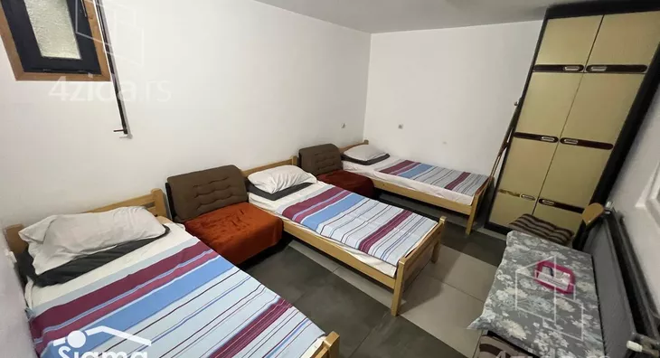Na istoj parceli nalaze se objekat od 151m2 uređen za usluge smeštaja. Po ulazu pruža se dugačak hodnik koji povezuje sve sobe i dnevni boravak. Odvojen je dvosoban petokrevetni apartman sa zasebnim kupatilom. U nastavku se nalazi dve jednokrevetne, dve dvokrevetne i jedna trokrevetna soba sa 2 zajednička kupatila. Dnevni boravak je prostran sa manjom kuhinjom uređen kao trpezarija. Postavljena je keramika, PVC stolarija a grejanje je centralno na kotao na gas. Klima uređaj. Na ovom objektu je takođe urađena demit fasada. Uknjiženo, 1 vlasnik.