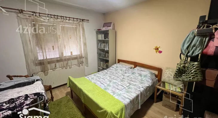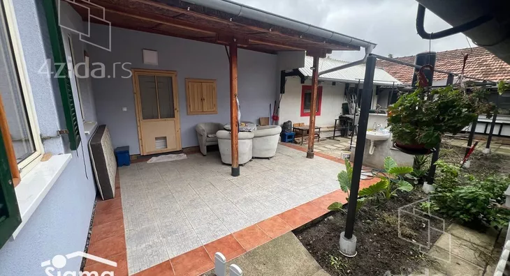 Prizemna trosobna kuća od 136m2 se nalazi na uličnom delu parcele od 483m2 koja poseduje kolski ulaz. Po ulazu se pruža hodnik koji vodi u sve prostorije. Postoji dnevni boravak sa kuhinjom i ostavom, dve spavaće sobe i kupatilo. Iz dnevnog boravka se može proći u letnju kuhinju i dvorišnu terasu. Postavljen je brodski pod, PVC stolarija a grejanje je centralno na kotao na gas i kamin. Postavljena je izolacija ispod poda na ploči i urađena je demit fasada. Klima uređaj. Ispred kuće se nalazi parking za 5 automobila.