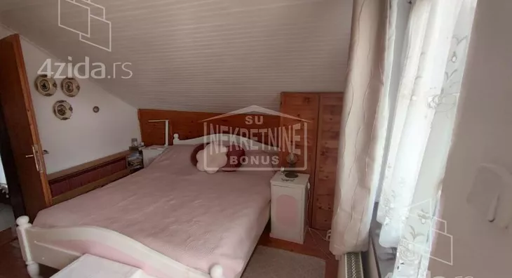 Kuća u Željezničkom naselju, blizu ulice "Jovana Cvijića", sa lepim placem. Kuća poseduje prizemlje, potkrovlje i podrum. Na placu ima puno zelenila i cveća. Kuća ima 180m2 i u toj kvadraturi je i jedna garsonjera. Pored toga kuća ima i suteren od 40m2. Postoji mogućnost zamene za manji stan uz doplatu.