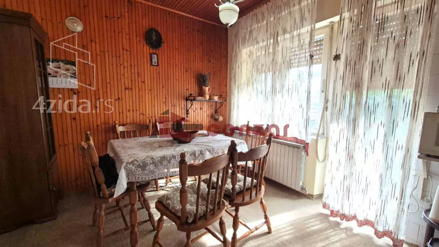 Prodaje se dvoetažna kuća zidana od čvrstog materijala i termoizolacijom, površine 104m2, u naselju Zorka. U prizemlju kuće se nalazi garaža, koja je povezana sa jednom prostorijom. Na spratu kuće se nalaze 3 zasebne sobe (jedna od soba ima izlaz na manju terasu sa ulične strane), kuhinja sa trpezarijom i izlazom na veliku terasu sa dvorišne strane i kupatilo. Postoji mogućnost da se od potkrovlja napravi dodatni prostor. Vodovod i kanalizacija su gradski, struja trofazna, stolarija drvena i pvc, grejanje je centralno na gas i na čvrsto gorivo. Dvorište je prostrano i puno zelenila, sa prirodnim hladom.