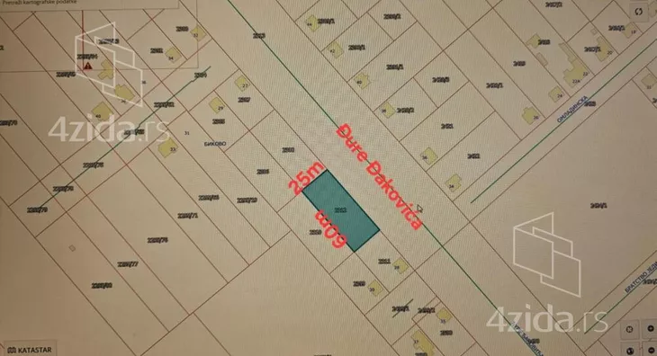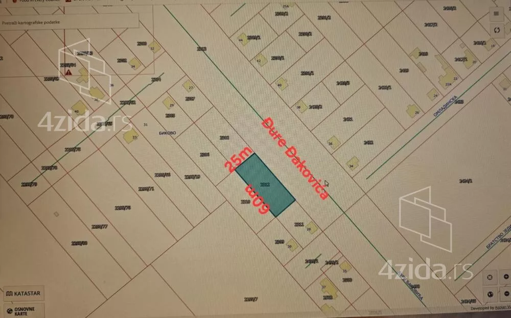 Na Bikovu , prodaje se građevinska parcela u uluici Đure Đakovića , 25m puta 60 m , ukupno 1499 kvm.