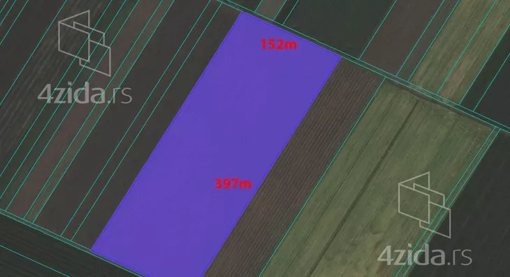 Čenta - poljoprivredno zemljište površine 6ha (60649m2). U prirodi njiva 4. klase, dimenzije parcele 152x397m, jedan vlasnik, fiksna cena. Agencijska provizija za kupca je 2%, odnosno minimalno 500 evra.