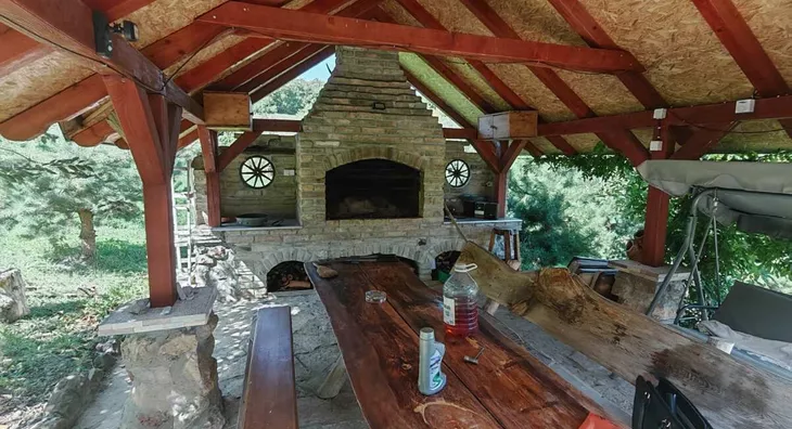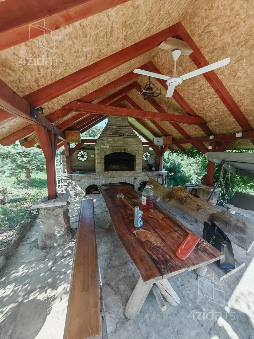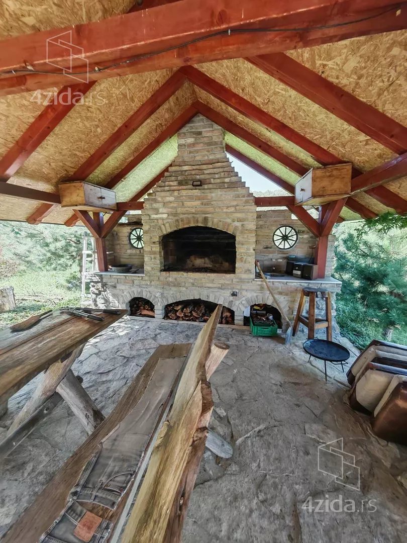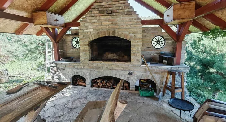 - natkrivenu nadstrešnicu sa velikim zidanim roštiljem i prostorom za sedenje,