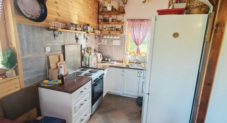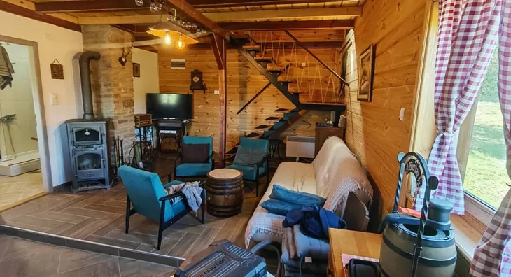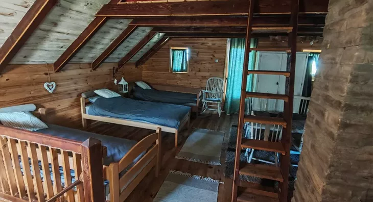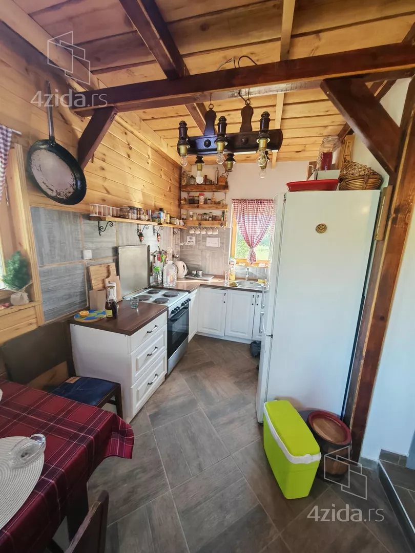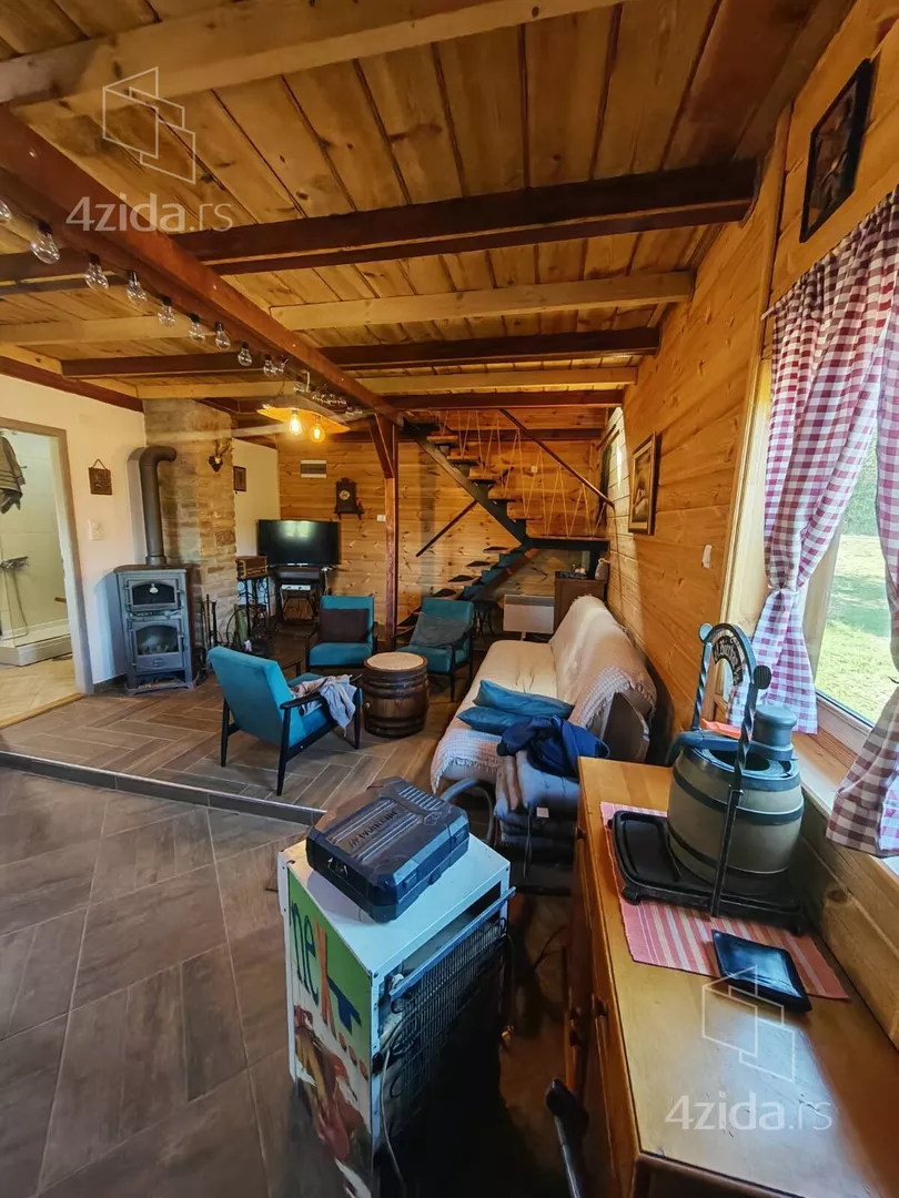 Na placu je smeštena brvnara površine 100 m², koja se sastoji od dnevnog boravka, kuhinje i kupatila sa saunom. Na spratu se nalaze kreveti, dok terasa pruža jedinstven pogled na okolinu.
