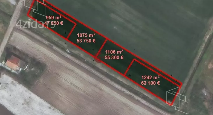 Eladó négy építési telek Kisradanovac városrészben, 2,8 km-re a városközponttól, a Kőrösi út és a Severna utca között. Alapterületük: 959 m², 1075 m², 1106 m² és 1242 m². A telkek üresek, közművek nélküliek.