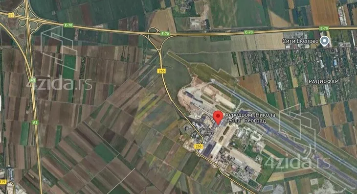 U ponudi je plac u gradjevinsko zoni aerodroma Nikola Tesla povrsine 100 ari .