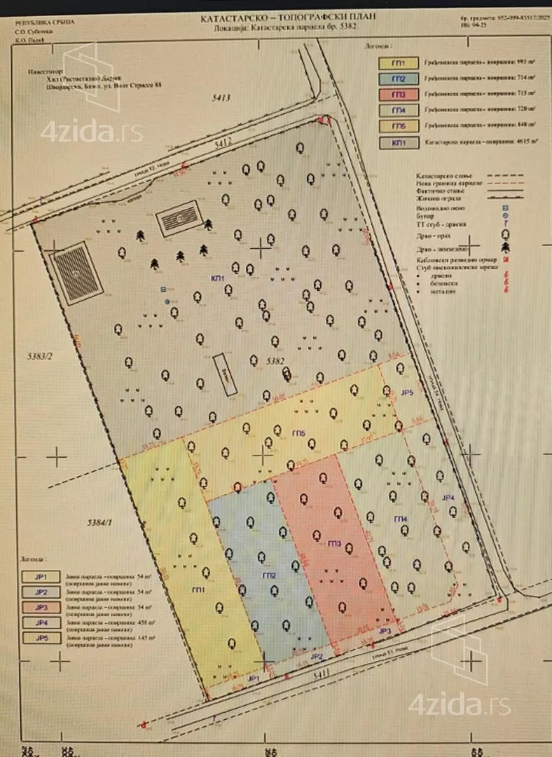 Građevinske parcele na Paliću .Ugao 51. nove i 54. nove ulice . Veličine parcela se vidi na priloženim slikama.