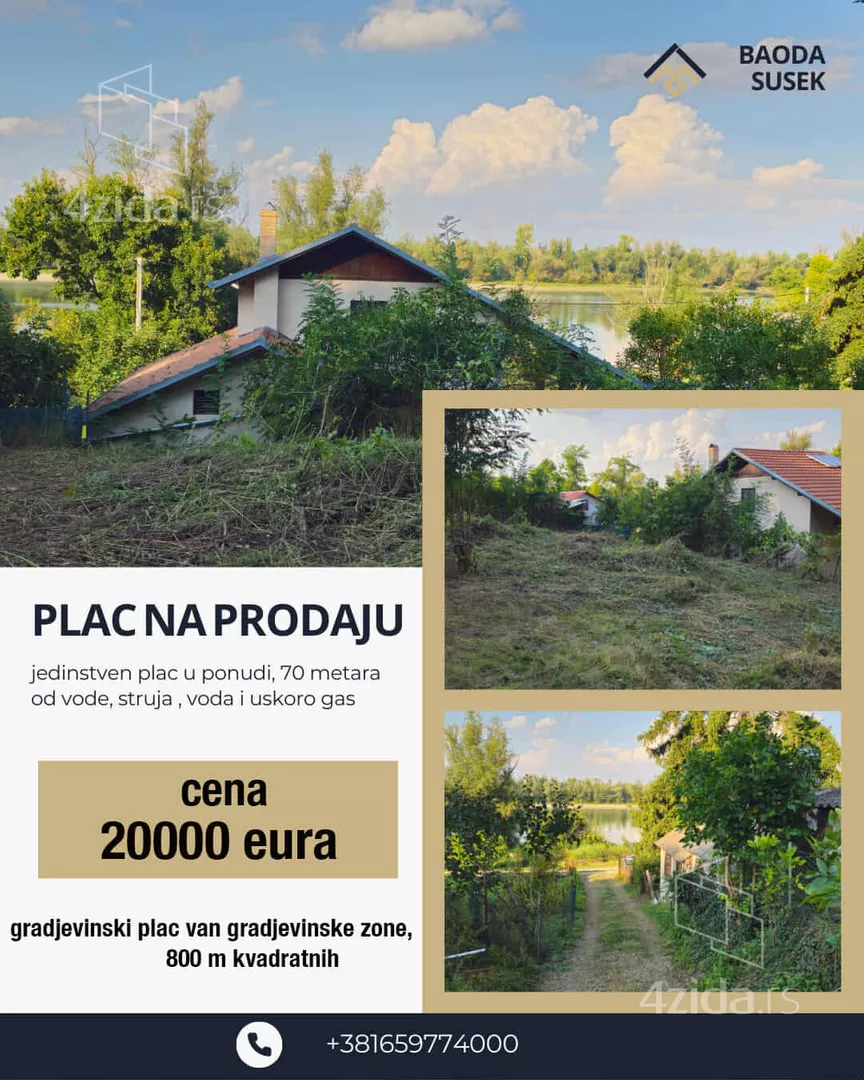 U srcu prirode, pored Dunava nalazi se ovaj prelepi plac. Prilaz je sa asfaltnog puta, do placa se nalazi struja, voda a uskoro i gas. Plac je ravan, pravilnog oblika, uzdignut tako da ne postoji opasnost od poplave. Sve dodatne informacije 065... (prikaži broj telefona)