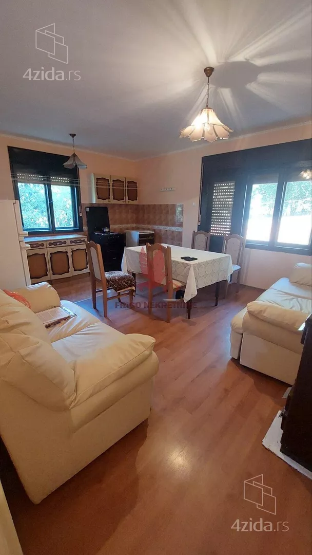 Šifra: K765 U mirnom selu Vlaška, na prodaju je prostrana polovina kuće (urađena je fizička deoba) površine 150 m² sa 11 ari ravnog i održavanog placa. Ova nekretnina spaja udobnost modernog života sa mirom i intimom koje pruža život u prirodi. Kuća je u odličnom unutrašnjem stanju, prodaje se nameštena i odmah spremna za useljenje. Lokacija je jedna od ključnih prednosti: – autobusko stajalište za centar Mladenovca nalazi se na svega 300 metara, – stajalište za Beograd, sa čestim polascima, udaljeno je oko 1 km, što ovu nekretninu čini izuzetno dostupnom i savršeno povezanom. U pitanju je polovina kuće, ali zidana ograda jasno razdvaja dvorišta, dok ograđeni kolski ulaz i zidana ograda oko celog placa garantuju privatnost i sigurnost. Raspored kuće osmišljen je tako da pruži komfor i funkcionalnost: – prostran dnevni boravak sa kuhinjom i trpezarijom, – 2 udobne spavaće sobe, – kupatilo, – toalet/vešernicu sa veš-mašinom, – 2 komforna predsoblja i hodnik, – ostavu, – 2 terase za uživanje u pogledu i odmoru. Dodatno, kuća poseduje garažu, što pruža još veću praktičnost. Plac je lep, ravan i uredan – savršen za porodična okupljanja, igru dece, baštovanstvo ili dodatne sadržaje po želji. Ovo je prilika da obezbedite sebi i svojoj porodici topao dom u kojem ćete uživati u privatnosti, miru i funkcionalnosti, a istovremeno biti nadomak svih važnih sadržaja i Beograda. Ako želite više informacija, pozovite broj: +38... (prikaži broj telefona) - Nataša +38... (prikaži broj telefona) - Tanja Angecijska provizija 3%