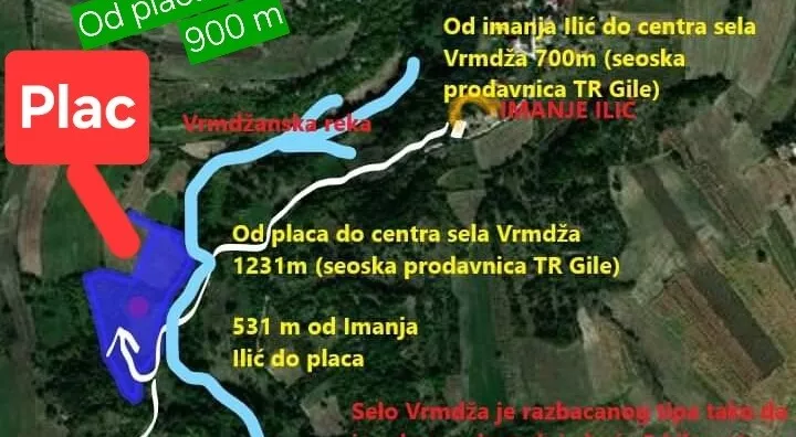 Plac se nalazi u podnožju planine Rtanj, preciznije u selu Vrmdža na 10km od Sokobanje. Ova lokacija je daleko poznata po svojoj lepoti, turizmu i netaknutoj prirodi. Plac ukupne površine 12100m2 se nalazi na katastarskoj parceli br:7814, na građevinskom zemljištu. Kroz sam plac protiče reka. Struja se nalazi na 500m od placa.