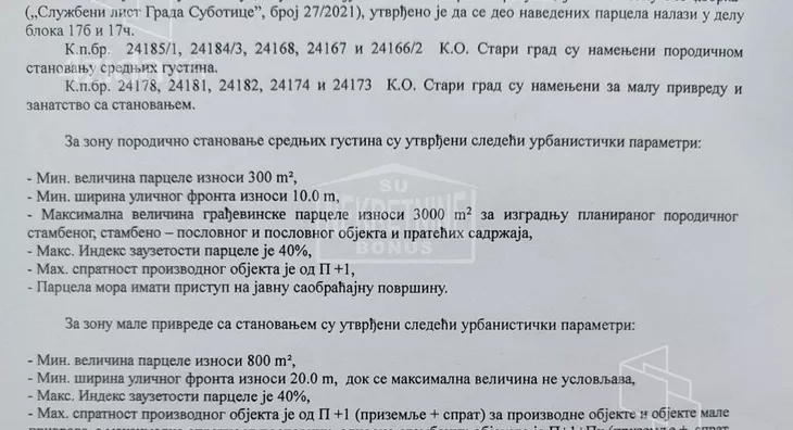 Prodaje se gradsko građevinsko zemljište u Sutjeskoj ulici, asfaltni prilaz.Ukupna površina svih parcela iznosi 19674 m2.Mogućnost parcelisanja na dosta manjih parcela po skici u prilogu,a pravila gradnje za porodična stanovanja srednjih gustina i zonu male privrede sa stanovanjem su takođe u prilogu.