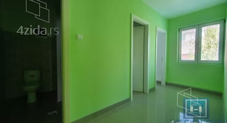 U prizemnom delu lokala smeštene su dve veće prostorije, ulazni prostor koji je strukturom odličan za čekaonicu i postavljanje informativnog i prijemnog pulta, kao i prostorija za wc (opremljena).