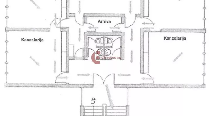 Sastoji se od 5 kancelarije, sanitarnog čvora, arhive, čajne kuhinje, hodnika, ulaznog trema.
