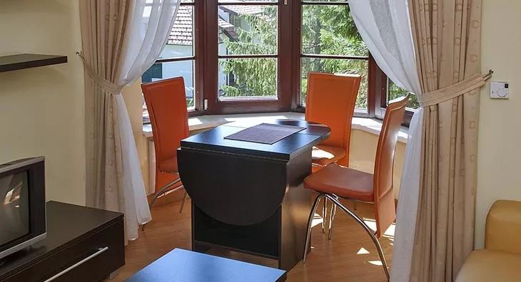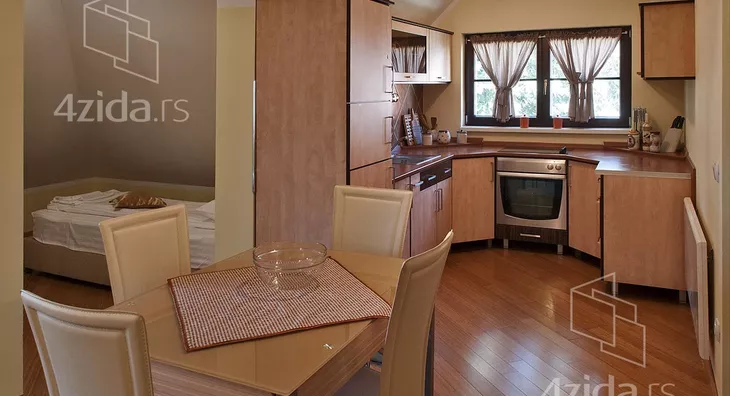 - 8 apartmana sa dnevnim boravkom, kuhinjom, jednom ili dve spavaće sobe (u zavisnosti od veličine), Total TV i internetom