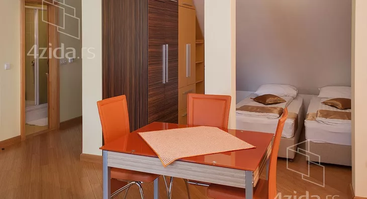 - Opremljenost: Namešteno - TV, centralna klima, kuhinjski elementi, frižider, šporet, ležaj, plakar, ugradni plakar