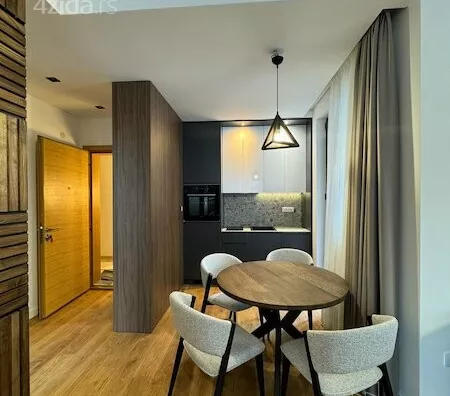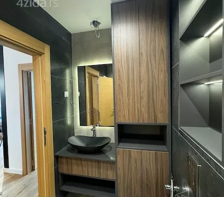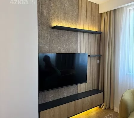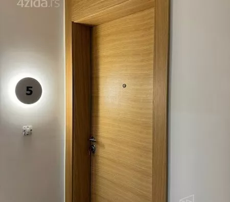 Apartman je u potpunosti opremljen, ima malo predsoblje sa prostorom za odlaganje, kupatilo, kuhinju, trpezariju, veliki bračni krevet u trosed na razvlačenje.