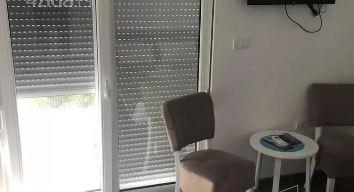 - Opremljenost: Namešteno - internet, TV, kuhinjski elementi, frižider, mikrotalasna rerna, šporet, ležaj, plakar, ugradni plakar, kancelarijski nameštaj