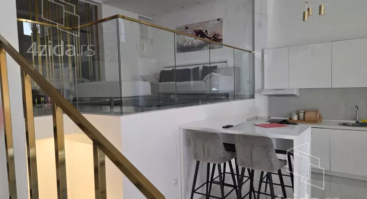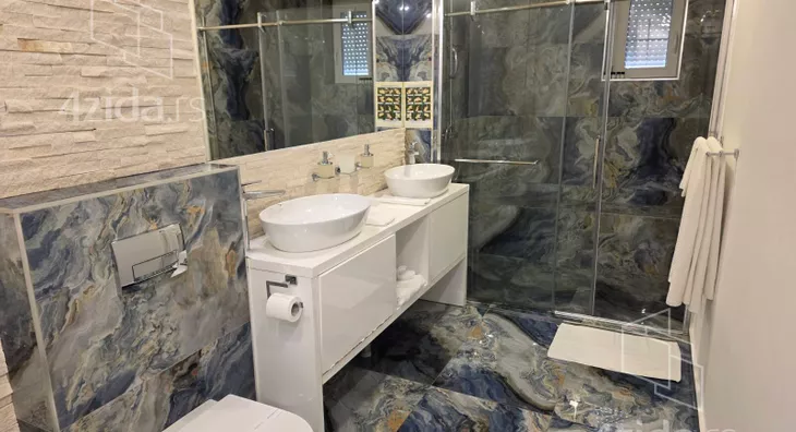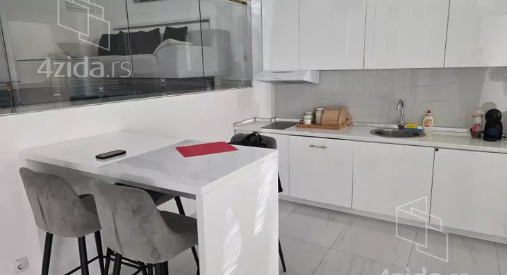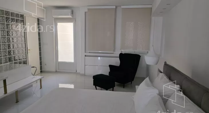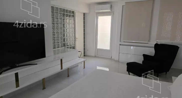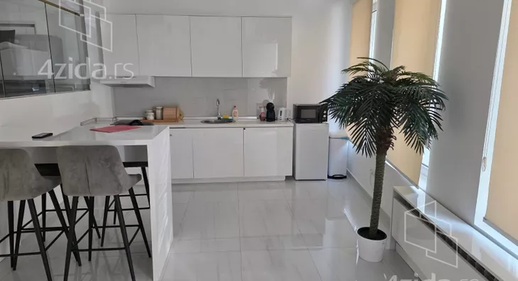 - Opremljenost: Namešteno - internet, TV, klima, veš mašina, kuhinjski elementi, sudo mašina, frižider, zamrzivač, mikrotalasna rerna, šporet, rerna, ležaj, plakar, ugradni plakar, kancelarijski nameštaj