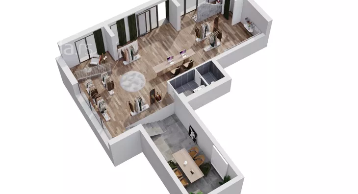 Commercial space is located on the ground floor with a total area of 114.57m2