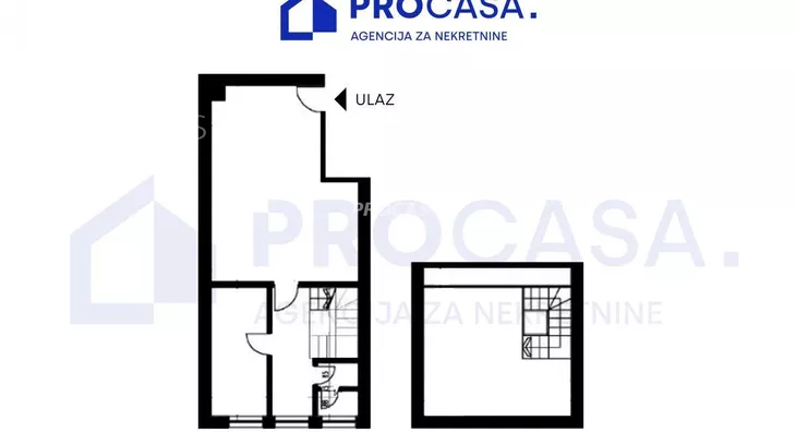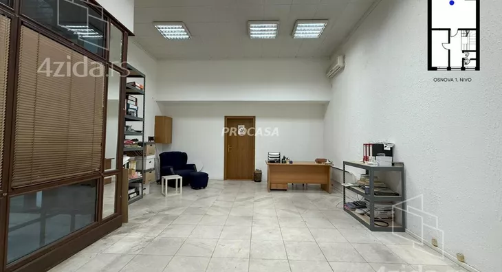 Struktura: 2 nivoa donji nivo 2 kancelarije i kuhinja i toalet, gornji 1 kancelarija sa prirodnim svetlom