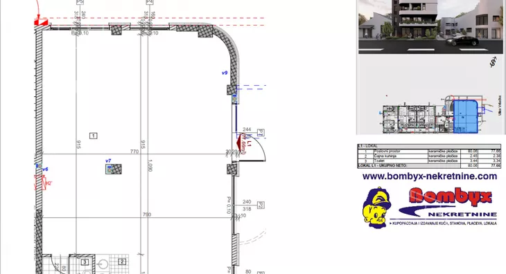 Cena lokala od 77m je 2.600 Eur/m + pdv a ostalih 270m je cena 2,200E/m + pdv