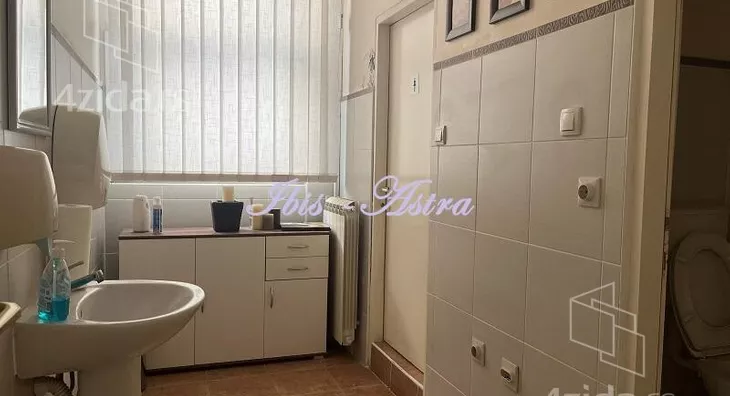 Poslovni prostor za prodaju kod Voždovačke crkve U prizemlju stambene zgrade kod Voždovačke crkve, za prodaju poslovni prostor uknjižen na 63m2 (mereno 70m2). Prostor ima 2 mokra čvora, po želji trenutnih zakupaca podeljen na 4 kancelarije i prijemni deo. Ulaz direktno sa ulice. Grejanje na struju, s tim što u prosotru postoje instalacije i za priključenje na centralno. Pločice na podu. Visina plafona 3. Prostor pogodan za više namena, a idealan za ordinacije, kozmetičke salone i sl. Agencijska provizija iznosi 2%