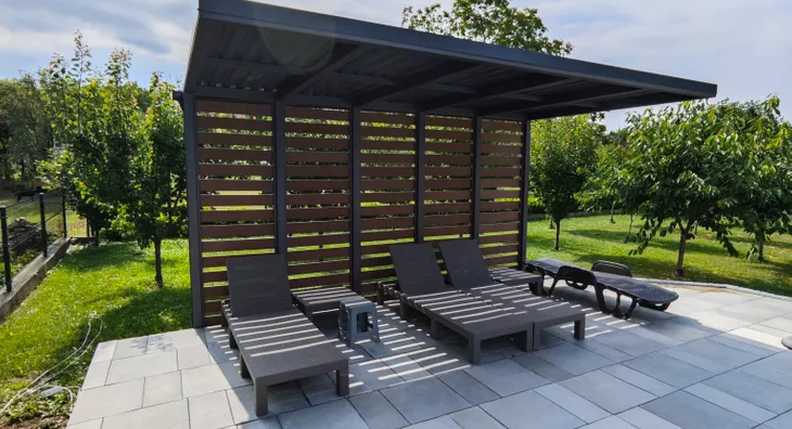 Dodatne pogodnosti uključuju bazen sa slanom vodom 9x3, prostrano dvorište, garažu, veliki parking i prelepi voćnjak. Ceo objekat je opremljen centralnom klimom, što ga čini idealnim za boravak tokom cele godine.