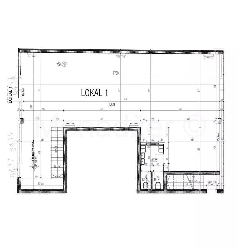 Na prodaju je lokal ukupne površine 210 m², od čega se 154 m² nalazi u nivou prizemlja, dok je 56 m² u nivou -1 (podrum). Lokal ima više mokrih čvorova, izlog ka ulici i dvorišnoj strani zgrade, što ga čini vidljivim i lako dostupnim sa obe strane objekta.
