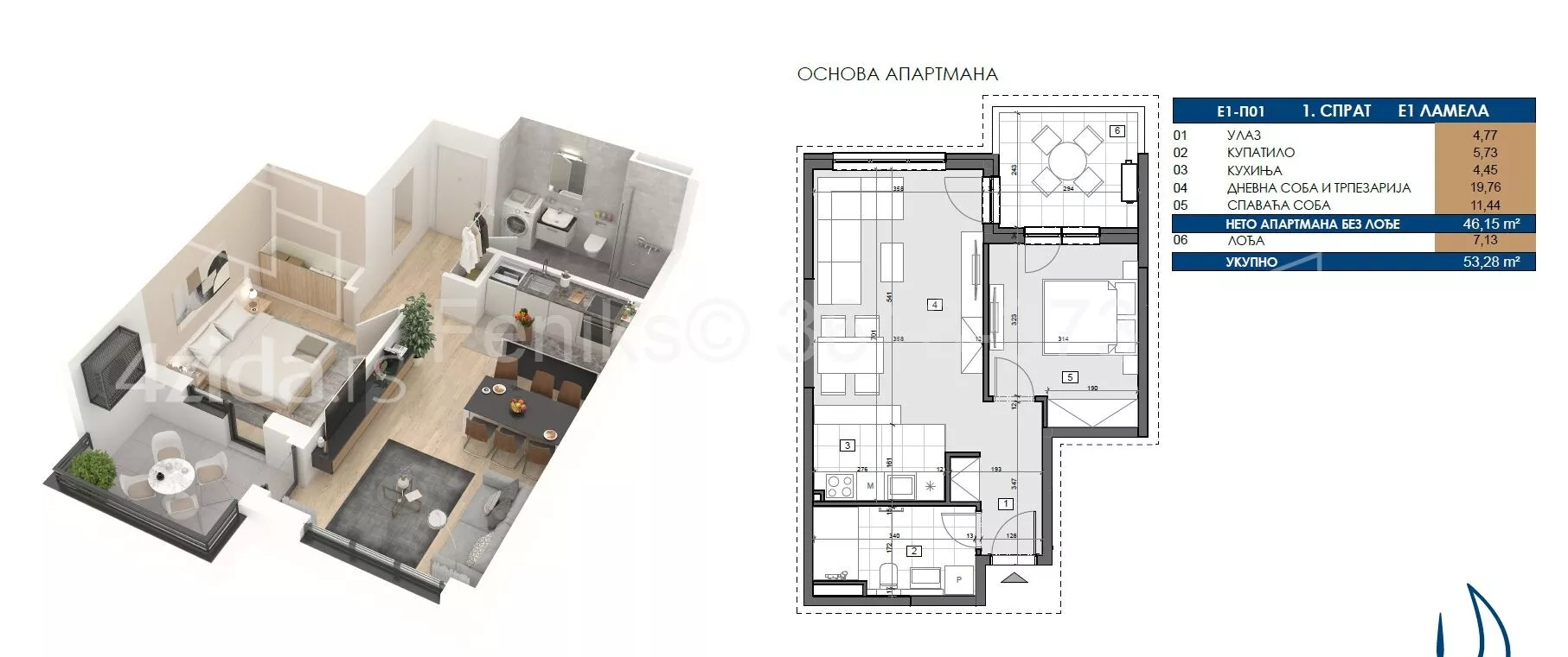 Dvosoban stan na prodaju, Jurija Gagarina, 220.000€, 55m²