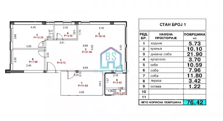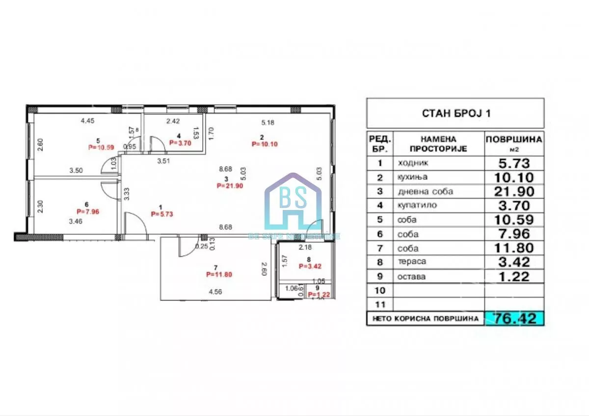 ▪️ Prodaje se troiposoban stan površine 76 m².