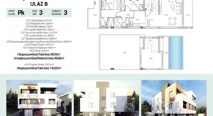 Visoko luksuzan stan sa bazenom ili velikim đakuzijem na krovu sa terasom od 60m2 sa koje se pruža prelep panoramski pogled. Stan se nalazi u vili sa 3 stana ima svoje parking mesto.